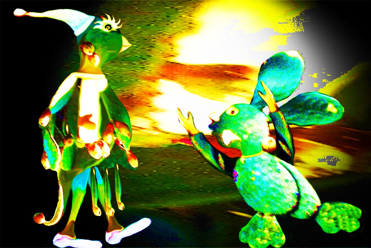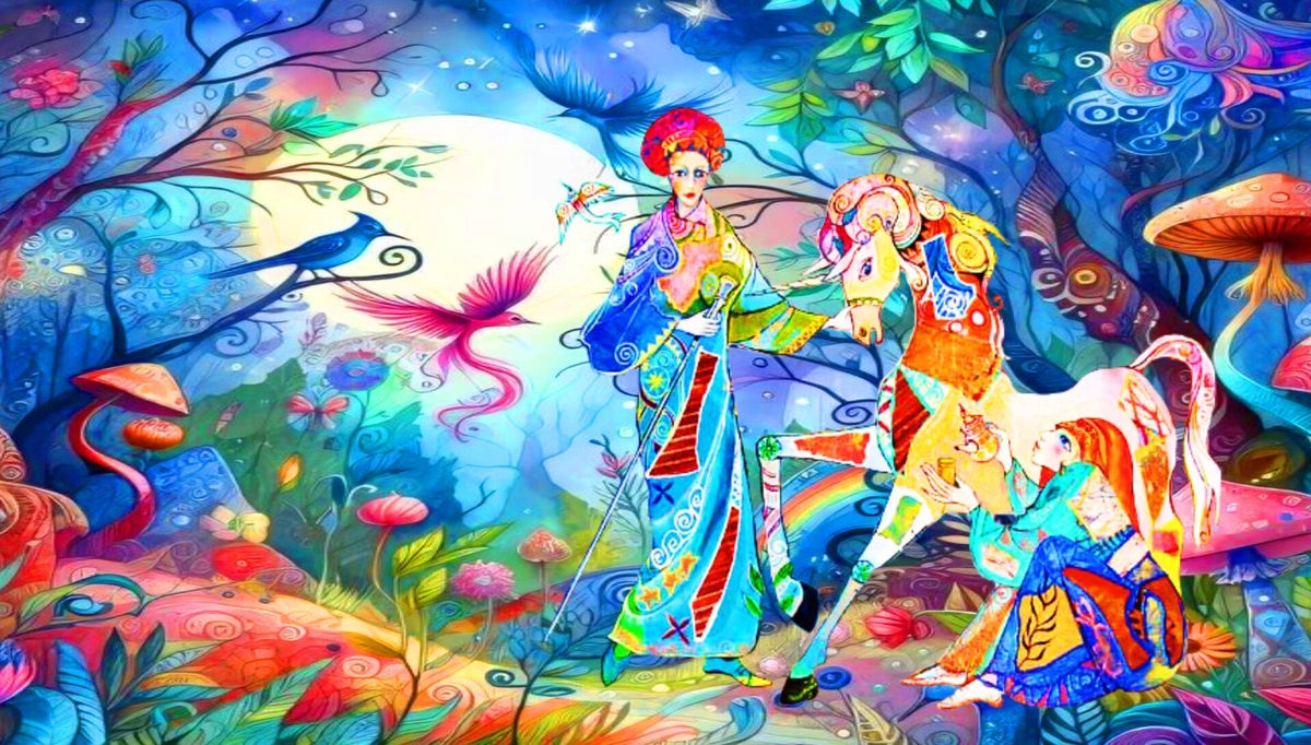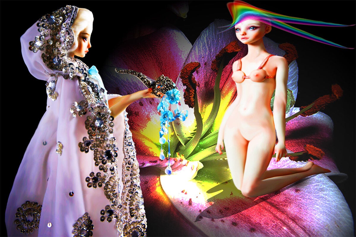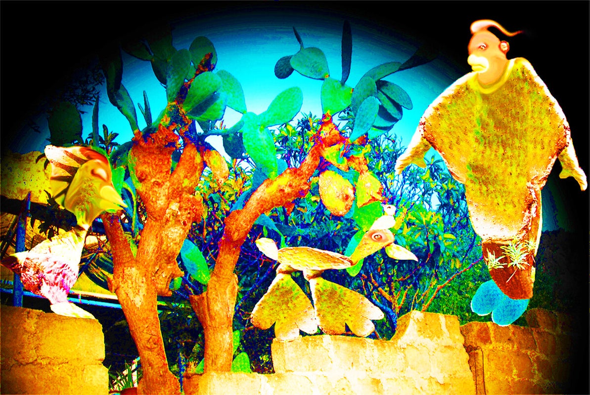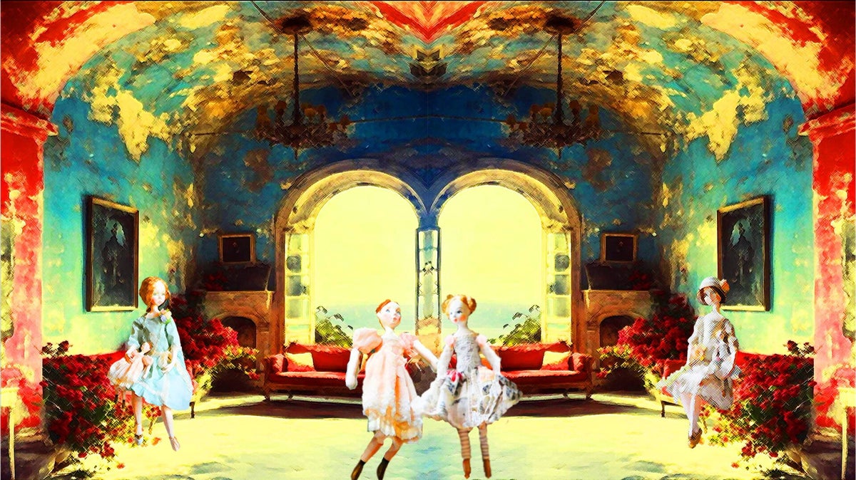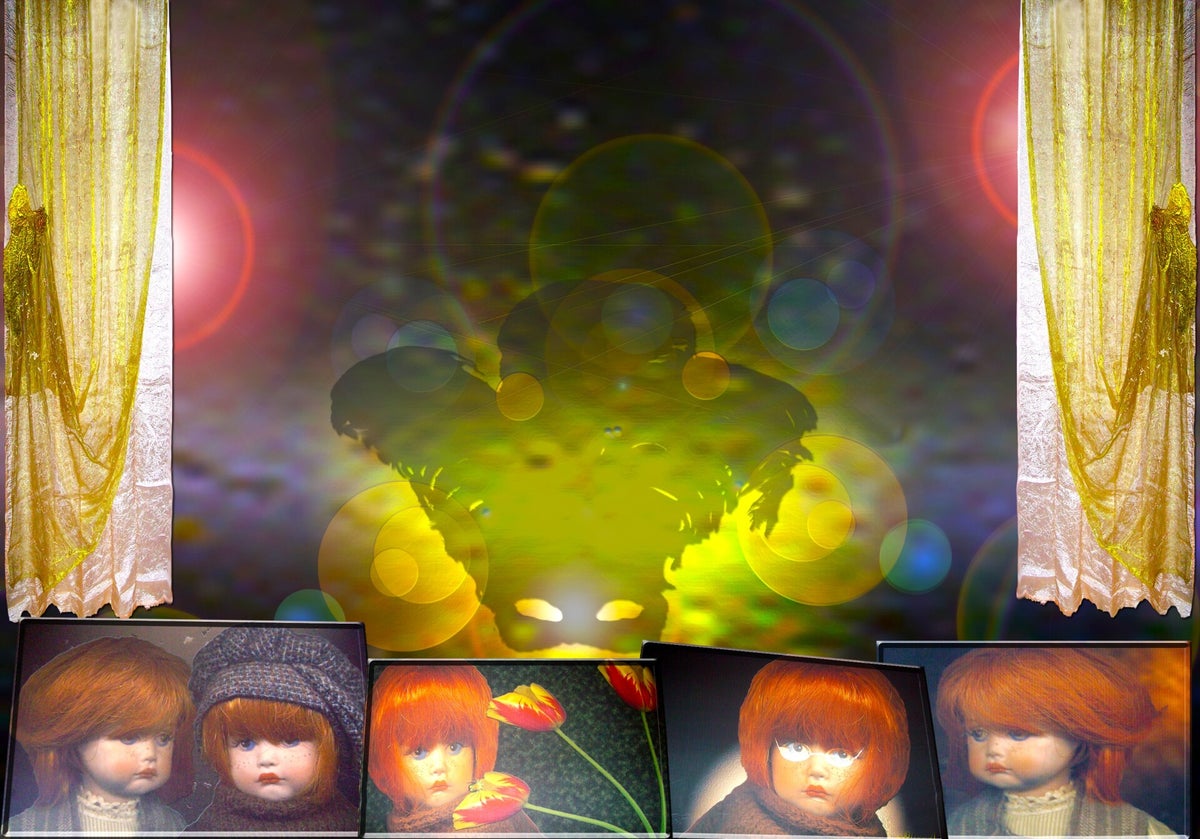 SURREALISMO FANTASY PERSONAGGI ARTISTA DIDIER DELAMONICA CON INTERVENTO MIO CON ALTRI PERSONAGGI IN UNA VISIONE CON LO SFONDO COLLAGE.