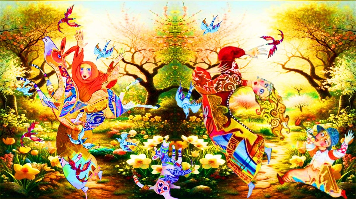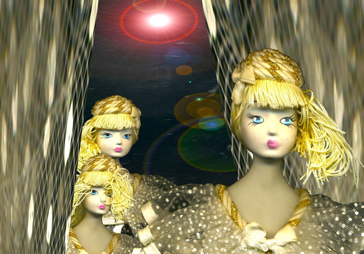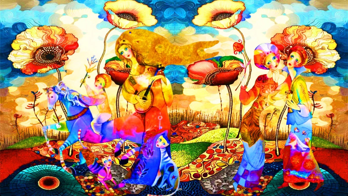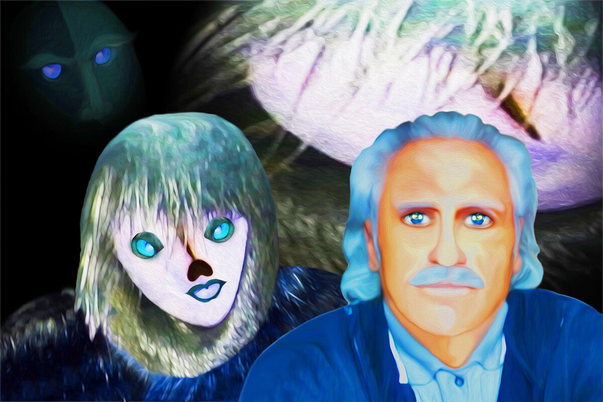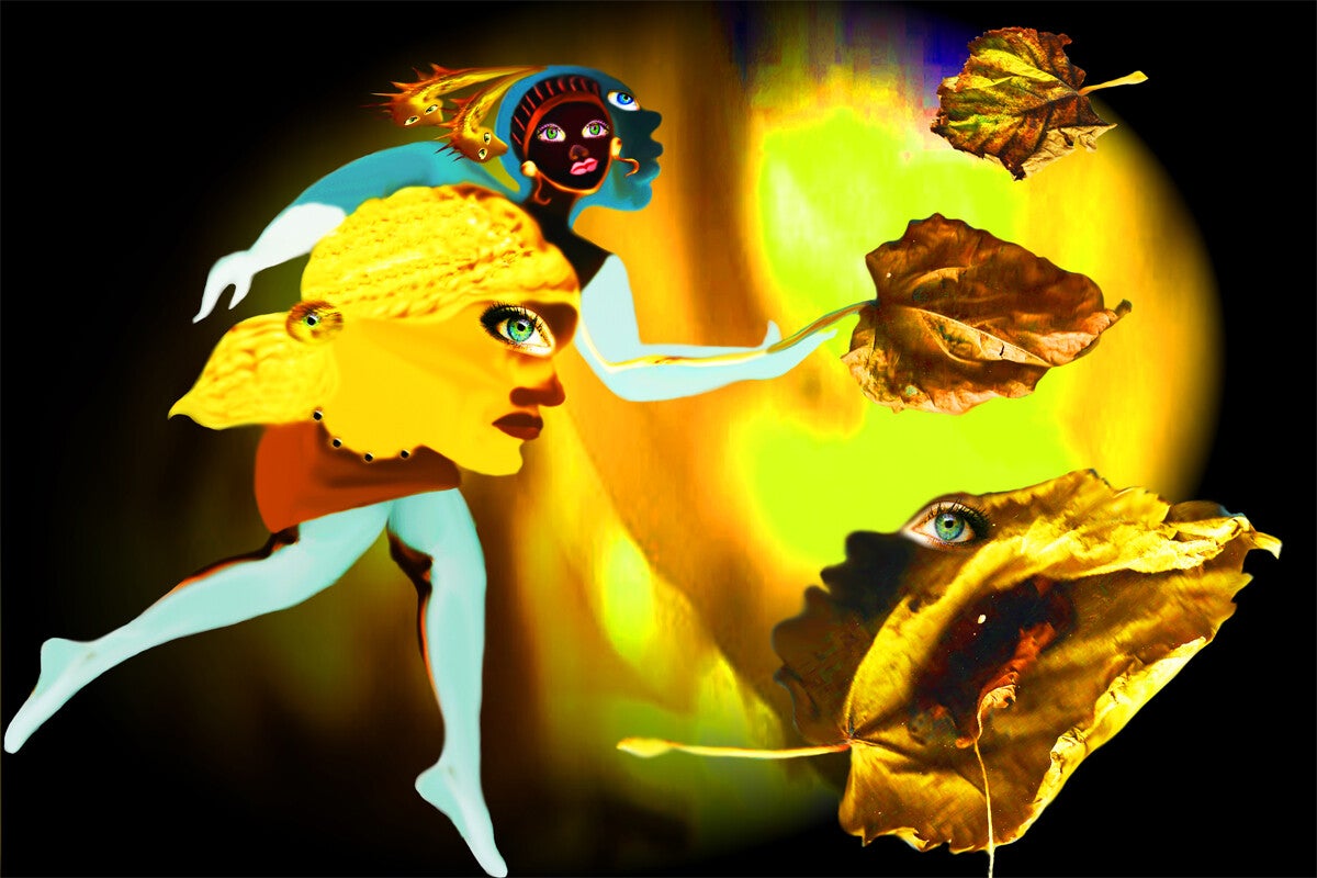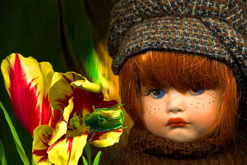 SURREALISMO FANTASY PERSONAGGI ARTISTA DIDIER DELAMONICA CON INTERVENTO MIO CON ALTRI PERSONAGGI IN UNA VISIONE CON LO SFONDO COLLAGE.