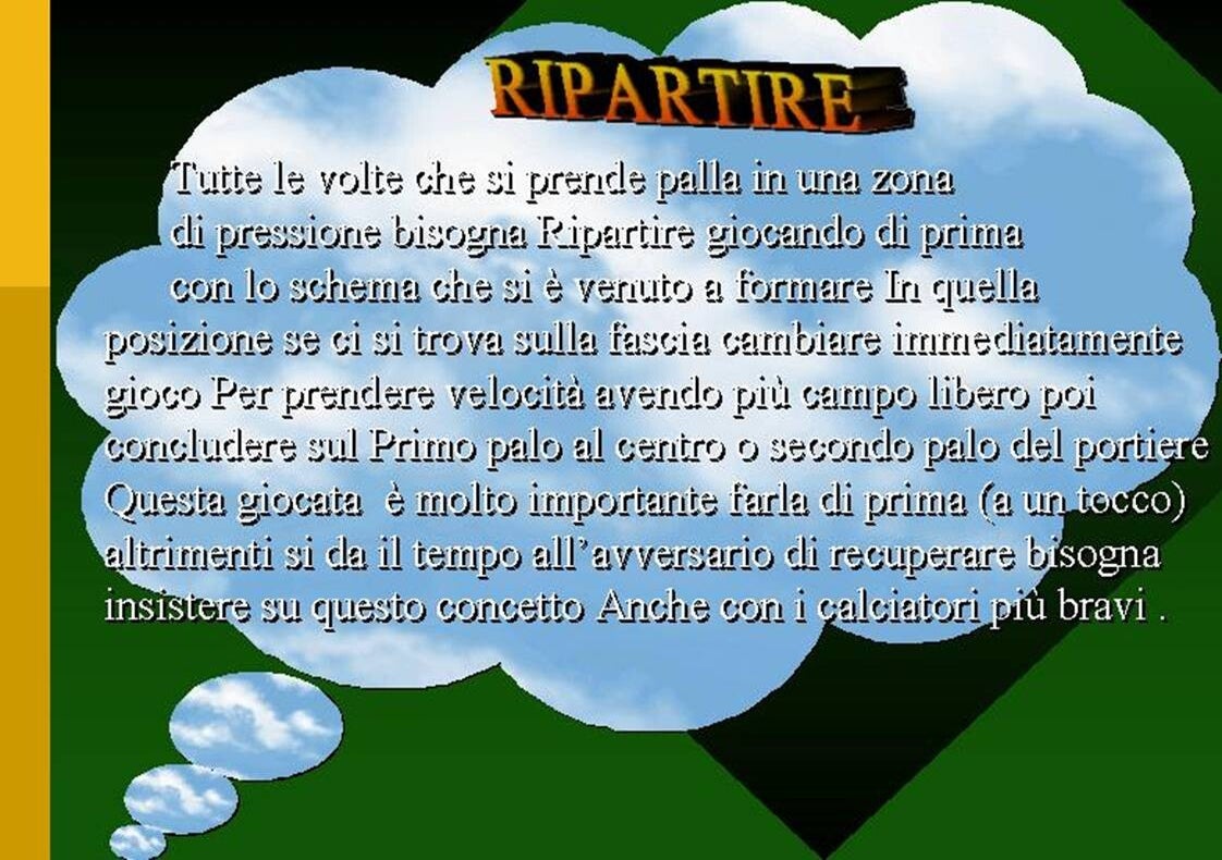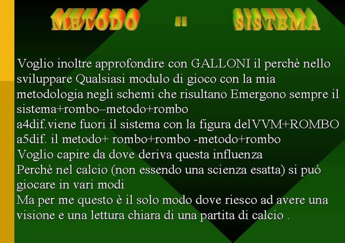 DETTO QUESTO GRADIREI CONTINUARE E SOFFERMARMI IN MODO PIU' APPROFONDITO SUI MIEI CONCETTI CALCISTICI IN ALTERNATIVA ALLA F.G.C., COME AVRETE SICURAMENTE OSSERVATO E LETTO NON CONDIVIDO AFFATTO QUESTO SISTEMA CALCIO, DOVE L'ESASPERAZIONE CONTRO L'AVVERSARIO CERTAMENTE PER SOLO SCONFIGGERLO , TRAMITE UNA DETERMINAZIONE VIOLENTA NEI CONTRASTI DI CONTATTO FISICO , DOVE PREVALE ANCORA CONCETTI DI ASTUZIA E FISICITA' , QUINDI LA MIA VISIONE DEL GIOCO DEL CALCIO , METTE AL PRIMO E SOLO POSTO LA REGOLA , DOVE VI E' UN UN NO ASSOLUTO AL CONTATTO FISICO SOLO PRESSIONE STATICA SUL PALLONE E NELLA ZONA DI COMPETENZA ANCHE IL COLPO DI TESTA DEVE ESSERE EVITATO ( vi è uno studio dove si evidenzia una tendenza da parte del colpo di testa sul pallone che si manifesta con l' Alzheimer). SOLO CON QUESTE BASI E CONCETTI IL GIOCO DEL CALCIO CI APPARE IN UN'ALTRA DIMENSIONE E SPETTACOLARITA' E SPITITO DA VERO SPORTIVO E NON SOLO TIFOSO. CONCLUDENDO IL MIO INTENTO SAREBBE QUELLO DI CANCELLARE QUESTA CULTURA RACCHIUSA IN QUESTI MORTIFICANTI SIGNIFICATI , " SI MA. SE GIOCHI BENE PERO' NIENTE " TITULI " - OPPURE " IL MIGLIOR ATTACCO E' LA DIFESA " ( due esternazioni e convinzioni di MOURINHO) ---------PERSONALMENTE : UN NUOVO PARADIGMA GEOMETRICO PER UNA CORALITA' DI MOVIMENTI IN SINCRONIA CON UNA TECNICA INDIVIDUALE SOPRAFFINA PER VINCERE LA SFIDA SPORTIVA ,NON SOLO TITULI ... --- LA MIGLIORE DIFESA E' L'ATTACCO........ ( SPERO CHE CAPISCA L'ALLENATORE MOURINHO....!!!! )