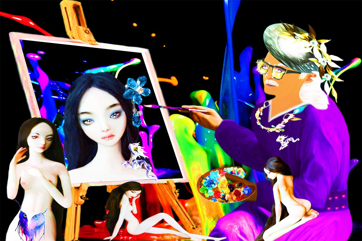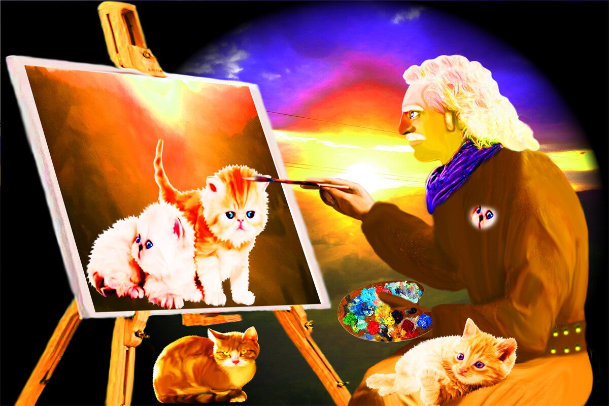AVEVO GIA' INTRAVISTO QUASI 12 ANNI FA, PUBBLICATO E REALIZZATO tramite immagini e video IL PERICOLO CHE INCOMBEVA SULL'ARTE E SULLE PERSONE STESSE DELLA NUOVA TECNOCRAZIA ROBOTICA E CIBERG -BORG DOVE L'UOMO NEL FUTURO PROSSIMO SAREBBE SOSTITUITO APPUNTO DAI ROBOT UOMO MACCHINA TRAMTE AI (intelligenza artificiale ), ora rivedendo questi due video mi sono reso conto che non si trattava solamente di INGENUITA' DI UN ARTISTA DIGITALE , E DELLA POSSIBILITA' DI CONNUBIO TRA UOMO E ROBOT, ORA NON HO PIU' DUBBI NON SARA' ASSOLUTAMENTE POSSIBILE GUARDANDO E LEGGENDO ORA LA TRASCRIZIONE DI UNA ROBOT CHE DIPINGEVA IN MODO A DIR POCO SCIOCCANTE E AVVILENTE (per un (artista digitale normale ) LA FIGURA DI UN REALE INGLESE , ED E' STATO VALUTATO UN MILONE DI STERLINE . QUESTA PSEUDO OPERA LA COLLEGO ALL'ALTRO ARTEFATTO DI UN OPERA DI UNA BANANA ATTACCATA CON LO ,SCHOCK.... NON POSSONO PASSARE QUESTE OPERE COME ARTE PITTORICA L' AI SIAMO NOI COSCIENZA ARTISTICA UMANA. guardate questa immagine ideata da me su questa descrizione onestamente ha un valore umano diverso: