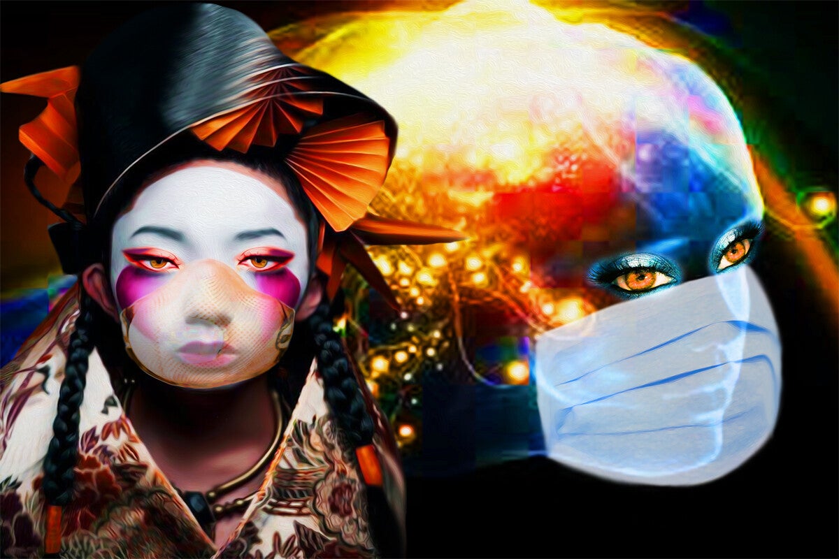 Nella tradizione musulmana coprire il volto delle donne era strumento di salvezza, perché la pubblica visibilità della donna poteva scatenare impulsi aggressivi e dunque potenzialmente violenti e distruttivi nell’uomo. Oggi, il Dio Virus pretende la stessa rinuncia alla pubblica visibilità, perché Egli non ama la socialità e non sopporta che gli esseri umani si dedichino gli uni agli altri, perché richiede fedeltà assoluta, e vuole i suoi Fedeli pienamente concentrati sulle terribili conseguenze che Egli può lanciare su chi non gli è Fedele, scatenando la sua sacra ira.