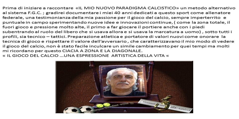 IN QUESTA SEZIONE DESCRIVO LA MIA CULTURA CALCISTICA DEFINENDO IL MIO GIOCO DEL PALLONE ATTRAVERSO